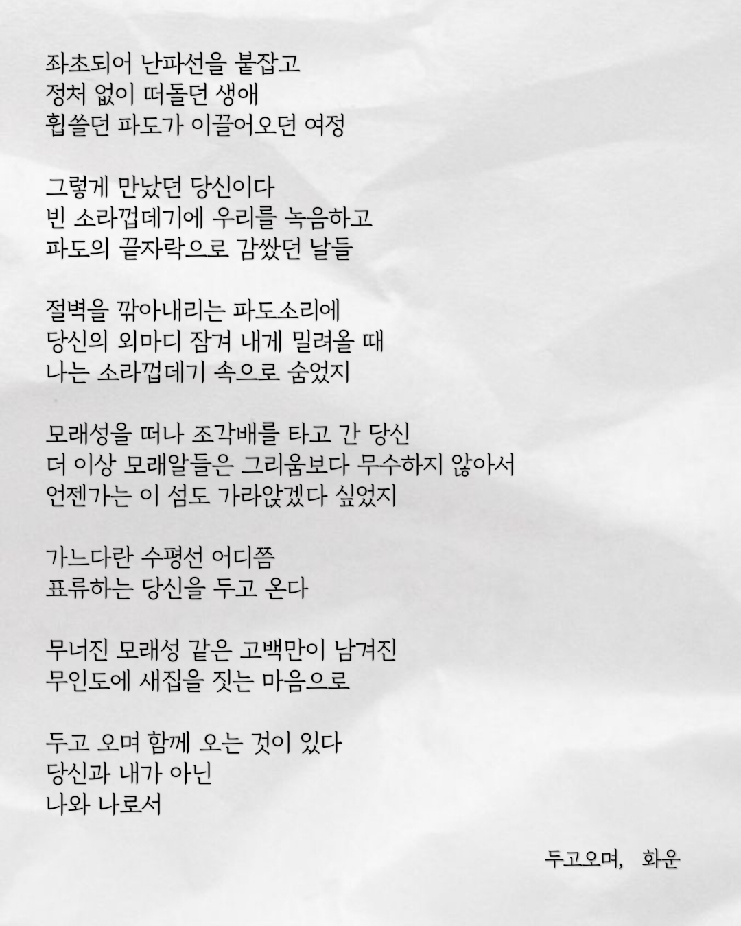 모래성을 떠나 조각배를 타고 간 당신