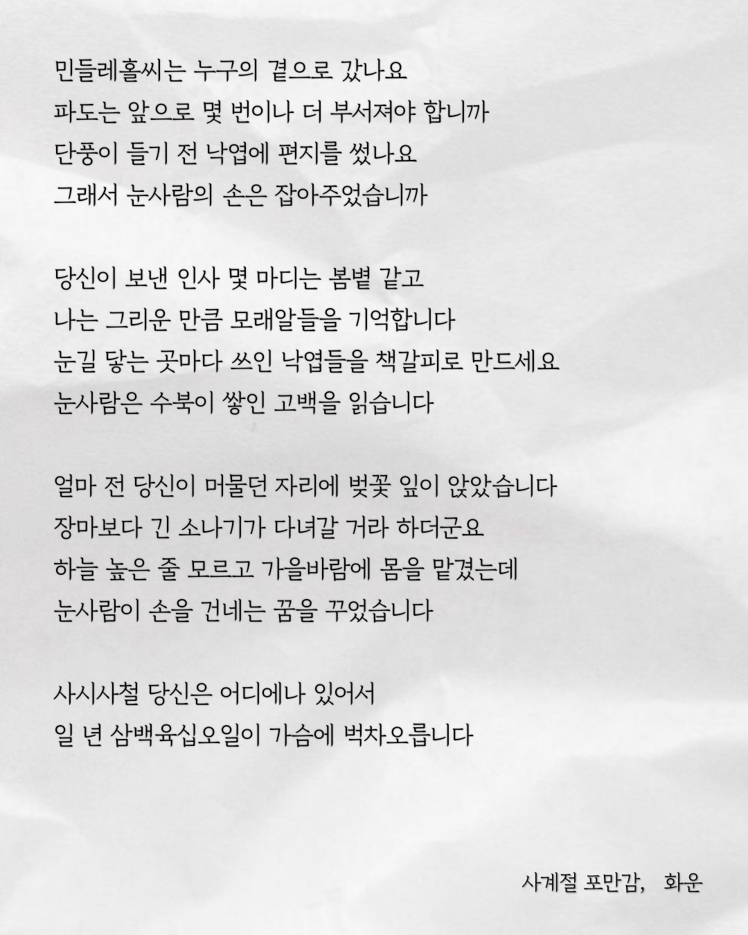 단풍이 들기 전 낙엽에 편지를 썼나요