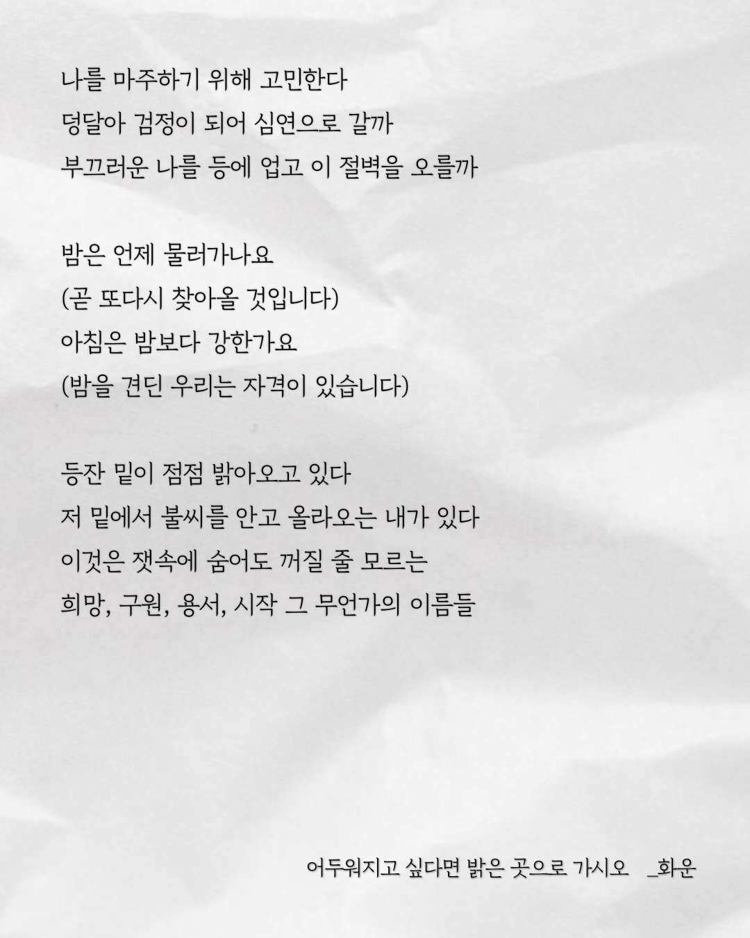 저 밑에서 불씨를 안고 올라오는 내가 있다